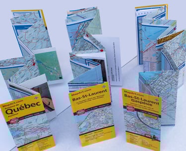 3 cartes routières sur lesquelles sont collées 31 « cartes postales » (photos au recto et textes au verso)